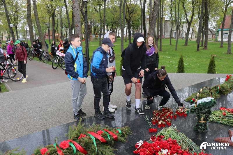 Также память тех, кто сражался за мир и свободу, участники велопробега почтили минутой молчания.