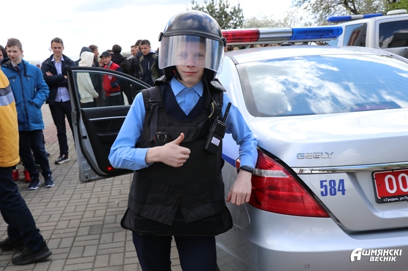 Старший инспектор ДПС отделения ГАИ Александр Яцукович и старший участковый инспектор Ошмянского РОВД Антон Винцковский рассказали о специфике своей работы и спецавтомобилях, которые помогают милиции эффективно и качественно нести службу. Начальник штаба отдела охраны Департамента МВД Олег Ковалевич довел информацию о службе в подразделениях охраны. Школьники смогли примерить на себя милицейскую экипировку, используемую при несении службы по обеспечению охраны общественного порядка.