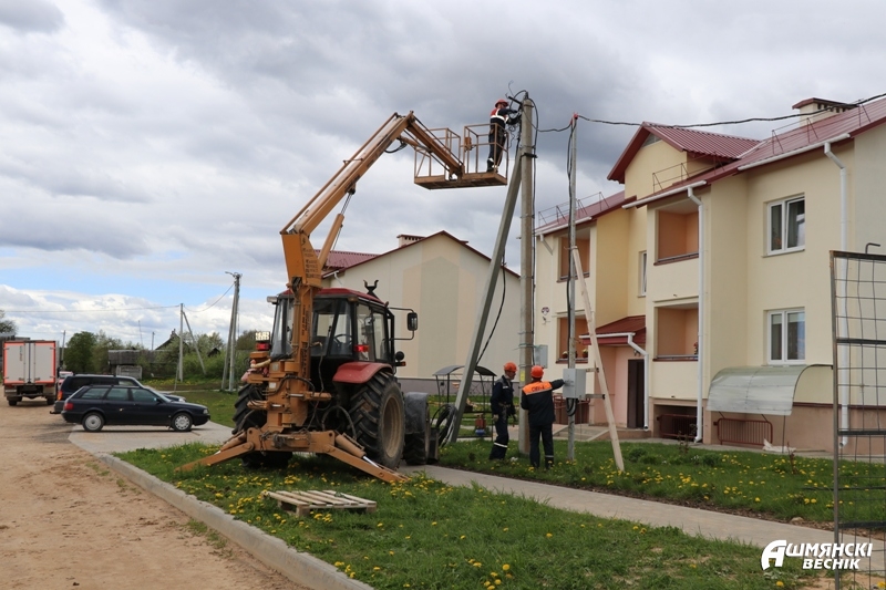 В связи со строительством дома по своему заданию работают с распределительными сетями линии электросвязи работники СМУ № 4 ОАО «Белсельэлектросетьстрой».