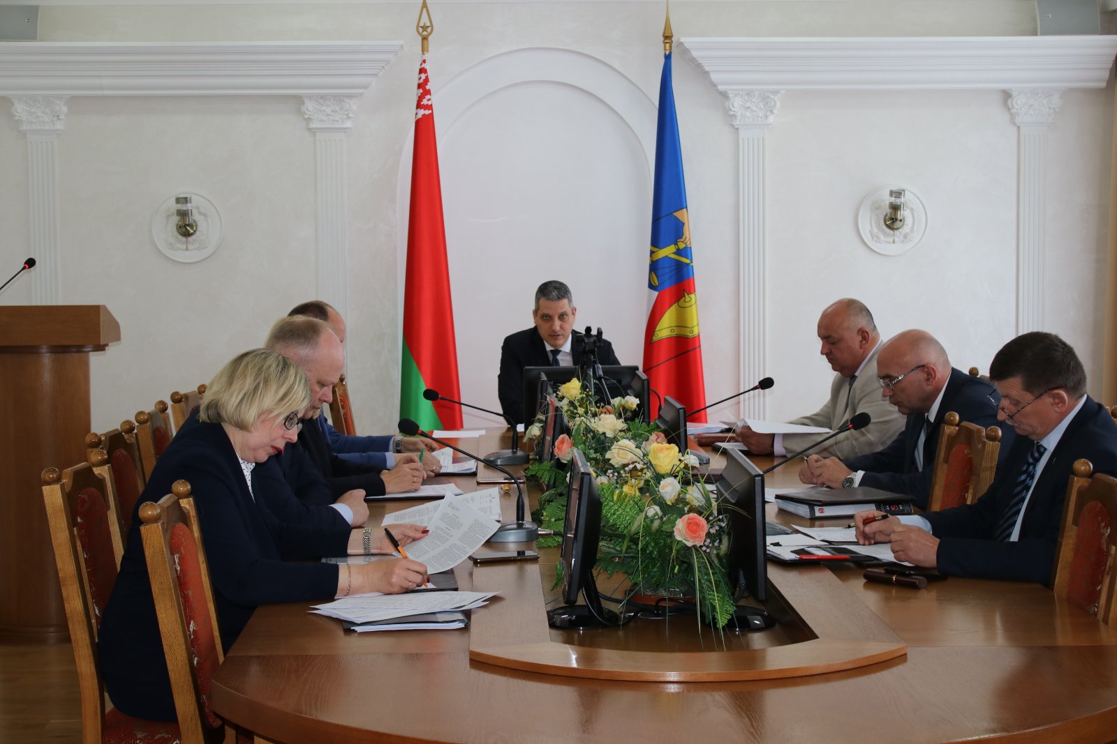 Открывая заседание, председатель райисполкома Владислав Гершгорин кратко остановился на результатах работы всех сфер, отметив положительную динамику в развитии региона. Так, по итогам первого квартала выполнены производственные показатели по производству валовой продукции сельского хозяйства — на 104,4 процента, розничному товарообороту торговли — на 103,2 процента, грузообороту — на 100 процентов. Несмотря на положительные тенденции, есть ряд задач, на которых предстоит сконцентрировать внимание. Среди них — выполнение показателей по индексу физического объема производства промышленной продукции и пассажирообороту. Кроме того, председатель райисполкома заострил внимание на задачах, обозначенных главой государства. Они касаются контроля уровня цен и их регулирования, обеспечения полноценной занятости населения и достойного уровня заработной платы.