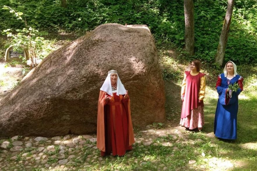 Сустрэла сталічных гасцей гаспадыня Навсёлкаўскага лесу, якая, паведаміўшы аб паходжаннні назвы свята “Сёмуха”, што пайшла ў гонар сямі тыдняў пасля Вялікадня, прапанавала кожнаму з іх сабраць па сем элементаў расліннага міру і загадаць жаданне. Падлеткі з букецікамі спусціліся па драўлянай лесвіцы да каменя, дзе артысты з Ашмянскага раённага цэнтра культуры запрасілі вандроўнікаў на тэатралізаванае прадстаўленне, заснаванае на легендах і міфах аб незвычайных уласцівасцях аб’екта прыроды, яго сіле і моцы.