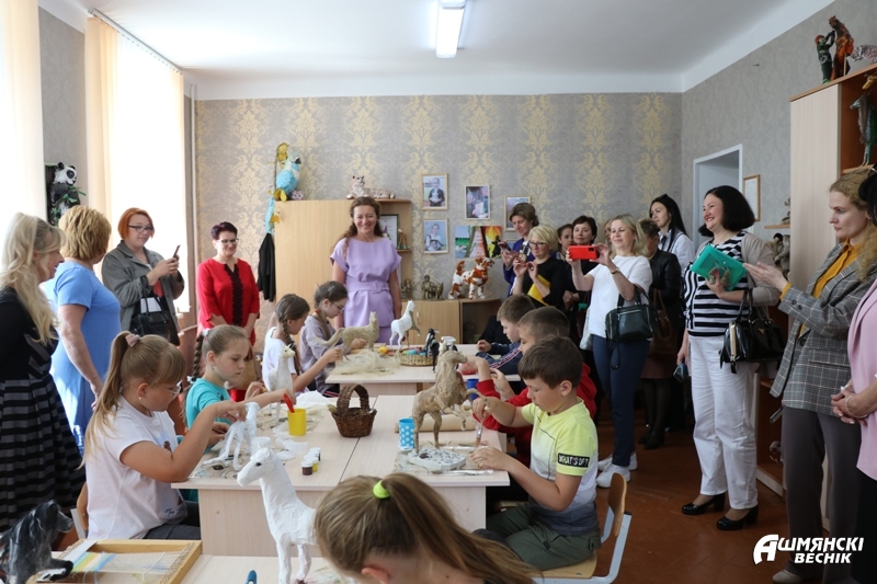 «Развивающая образовательная среда в учреждении дополнительного образования детей и молодежи как условие успешной социализации обучающихся» — так звучала тема итогового совета. О том, что такая среда создана для воспитанников Ошмянского центра творчества, гости убедились во время экскурсии по учреждению образования. Им были представлены выставка методических материалов и педагогического опыта, образцовые студии художественного творчества «Артмир» и декоративно-прикладного творчества «Чароўны куфэрак», театр кукол «Батлейка», музей истории пионерского движения Ошмянщины. Директор центра Ирина Буйницкая с увлечением рассказывала о достижениях центра и о том, что сделано в этом году для развития материально-технической базы. Многое в учреждении делается руками его работников: созданы и оформлены помещения для театра кукол, образцовых студий, кабинеты робототехники, кулинарии, занятий музыкой, английским языком, комната безопасности. Со вкусом оформленные интерьеры центра говорят о таланте и небезразличном отношении к делу работников учреждения. Несмотря на то, что идут каникулы, в центре дети готовили кексы в кабинете кулинарии, кто-то занимался в художественной студии, а члены экологического кружка под руководством Валентины Ломако представили итоги своих научных изысканий на сцене.