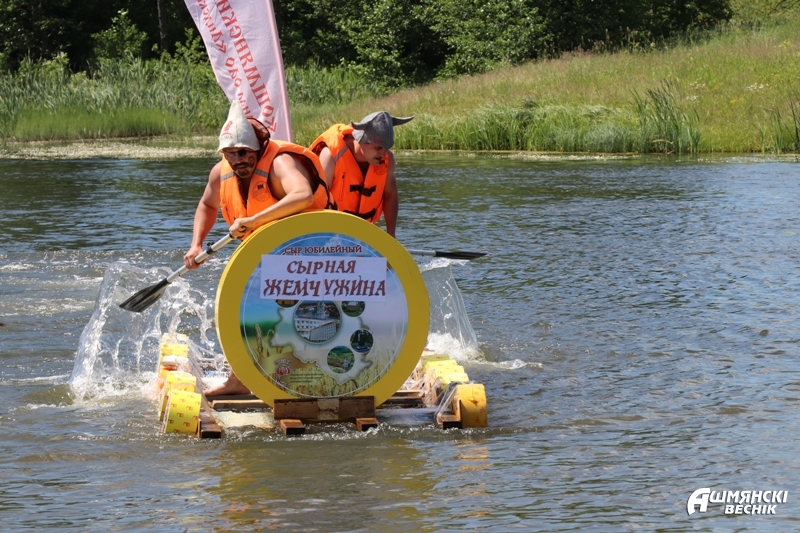 Команда сыродельного завода плыла на «Сырной жемчужине». Начальник бюро по заготовке сырья Сергей Матус стал капитаном корабля, а мастер котельной Артем Адамович справился с ролью боцмана. Внешность у ребят была самая что ни на есть пиратская. Конечно, не обошлось без соответствующего антуража – корабль украшали макеты головок сыра.