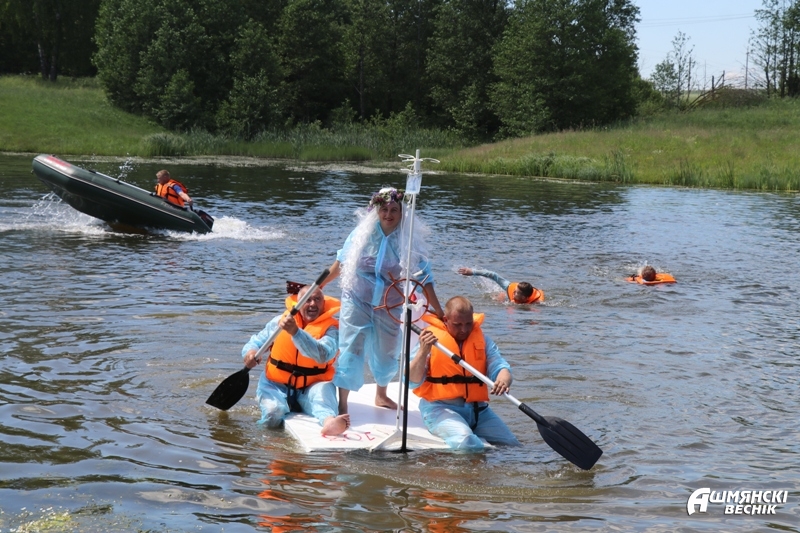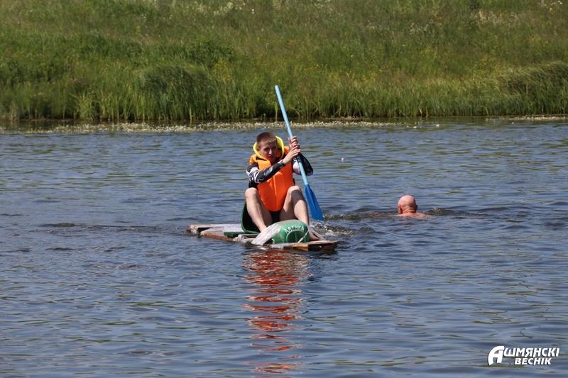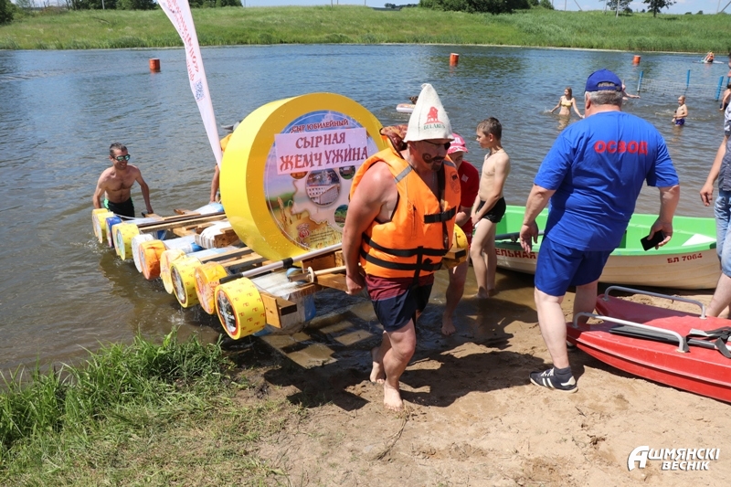Прошел он в рамках празднования Дня молодежи, приуроченного к Году исторической памяти. Откликнулись на призыв организаторов соревнований команды Ошмянского мясокомбината, сыродельного завода, центральной районной больницы, Цуденишского яслей-сада-средней школы. Плавательное средство, изготовленное непромышленным способом, должно было не просто держаться на плаву, а еще и преодолеть определенную дистанцию по озеру с командой на борту. Участники проявили изобретательность и в оформлении своих средств, и в представлении команд, и в экипировке.