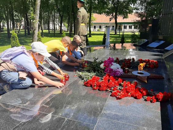 День всенародной памяти жертв Великой Отечественной войны ребята посвятили памяти прадедов, отдавших жизнь за мирное и ясное небо. После торжественного митинга в парке воспитанники лагеря возложили цветы к братской могиле.