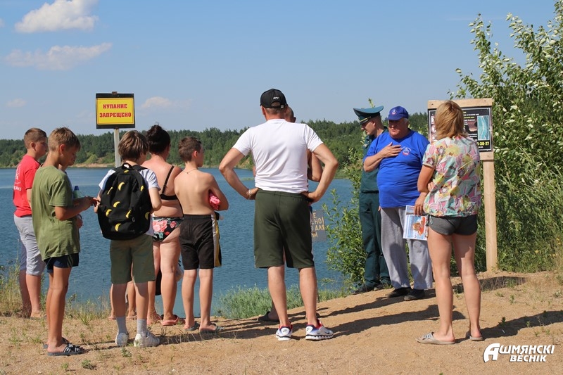 С целью предупреждения несчастных случаев на воде инспектор сектора пропаганды и взаимодействия с общественностью Ошмянского РОЧС Вадим Галговский, председатель районной организации ОСВОД Эдуард Кардель и корреспондент газеты «Ашмянскі веснік» провели очередное патрулирование водоемов района.