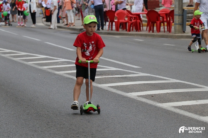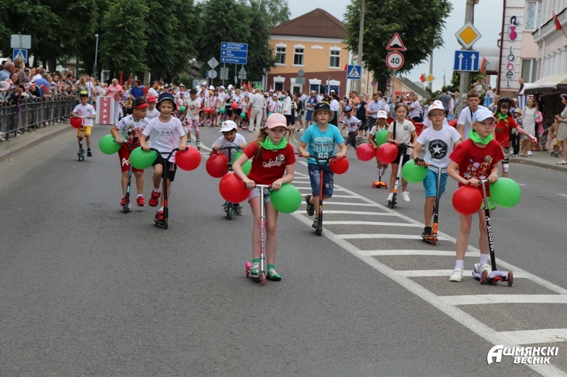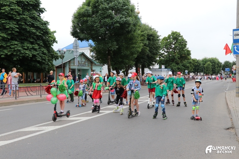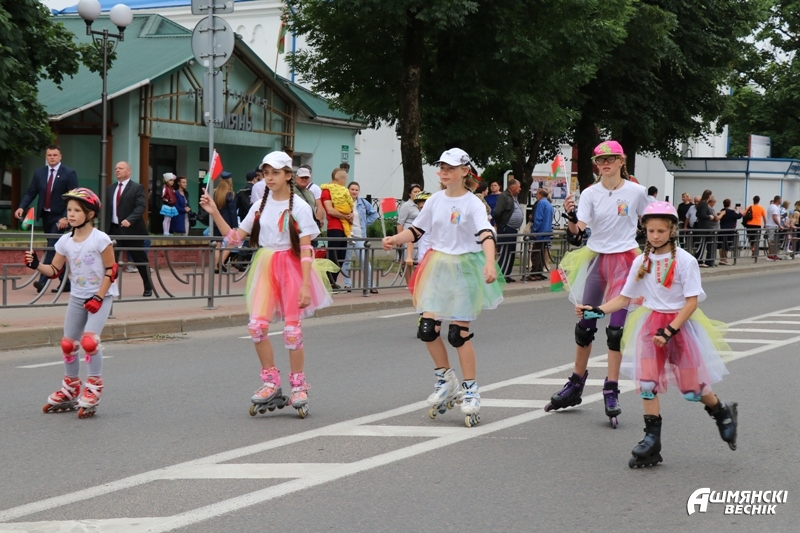 Перед началом торжеств с государственными символами в руках проехались по городу на роликах воспитанники детских садов, активисты пионерского и молодежного движения учебных заведений Ошмянщины. Поучаствовать в пробеге мог каждый независимо от навыков катания на роликах. В старте приняли участие ребята городских и сельских учебных заведений. Всего более 120 человек. В яркой спортивной одежде с элементами национальных символов, с красно-зелеными флажками, лентами, шарами в руках, они выразили убеждение, что подобные мероприятия помогают формировать у подрастающего поколения уважительное отношение к своей стране, ее истории и символике, чувство гордости за достижения белорусского народа и, безусловно, приобщить к занятиям спортом здоровым образом жизни.