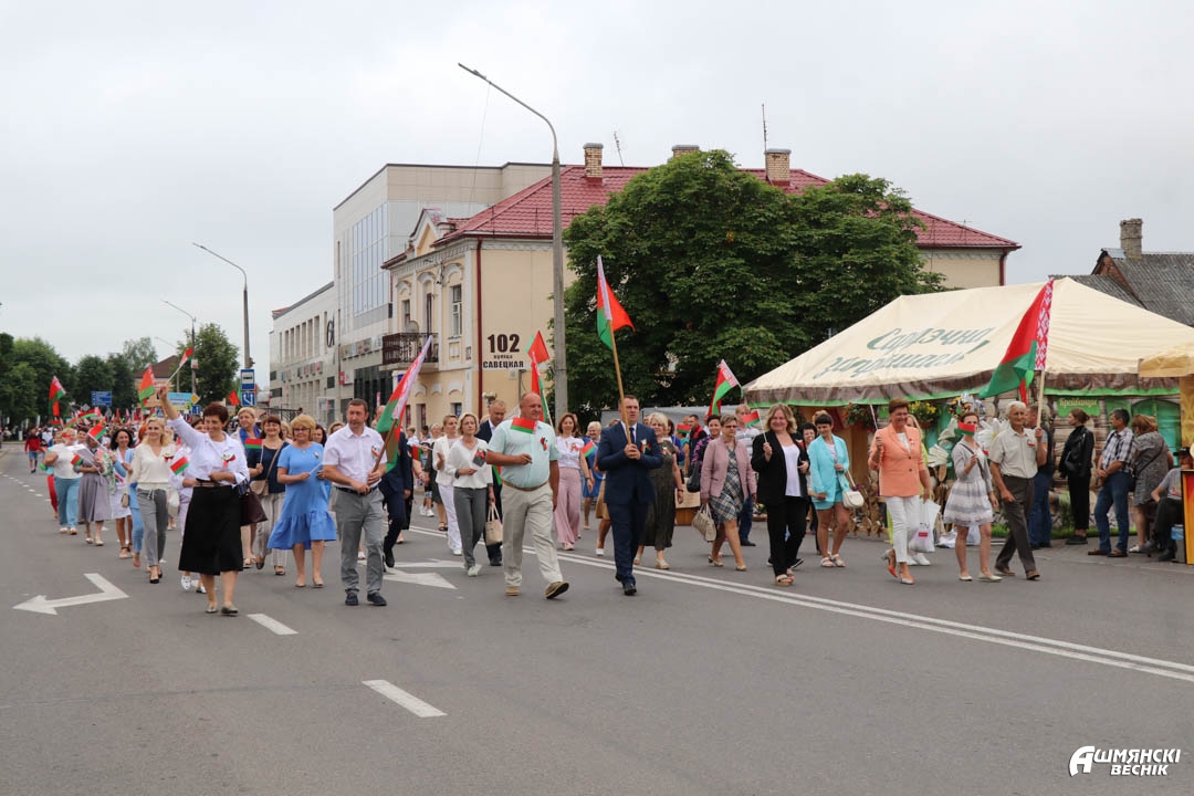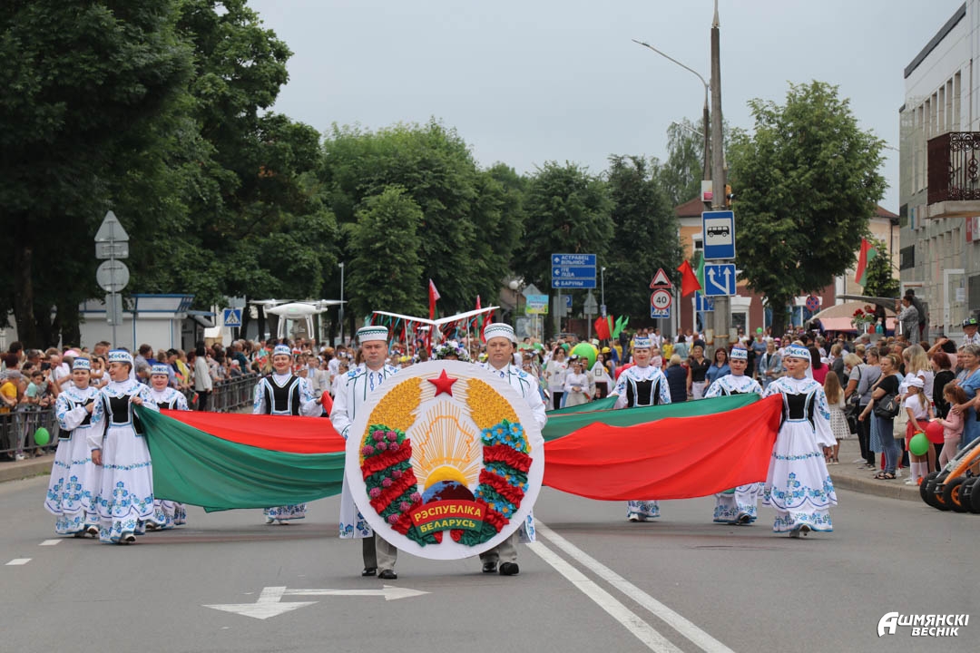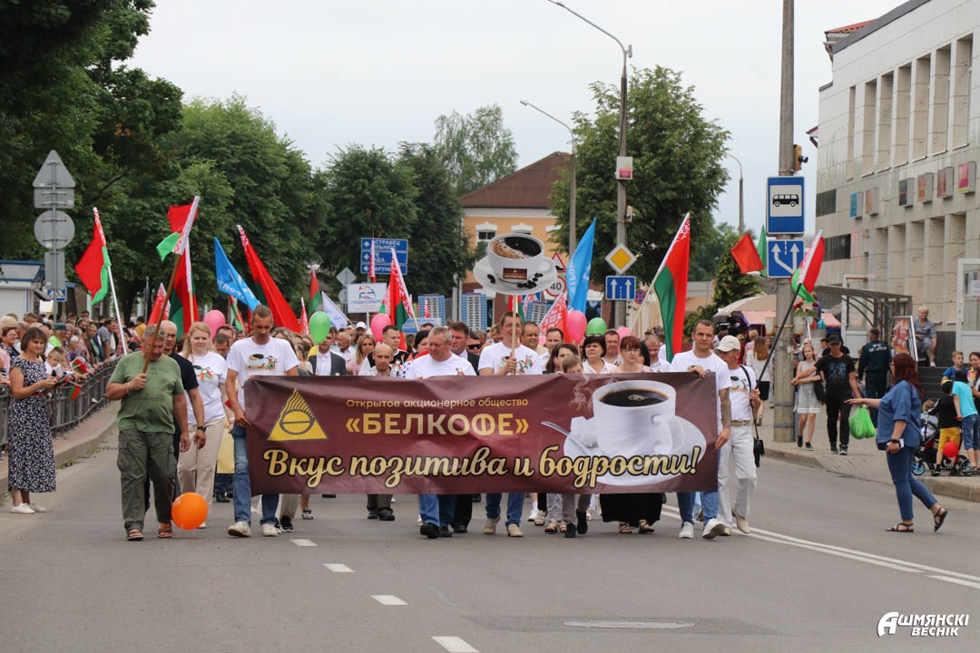 Ярким аккордом праздника, посвященного Дню Независимости Республики Беларусь, стало торжественное шествие «Мы — единое целое!» Главный государственный праздник объединил представителей местной власти, коллективы учреждений и организаций, детей и молодежь, активистов общественных объединений. 35 колонн приняли участие в праздничном шествии, которое открылось лирической композицией — творческим признанием в любви своей Родине.