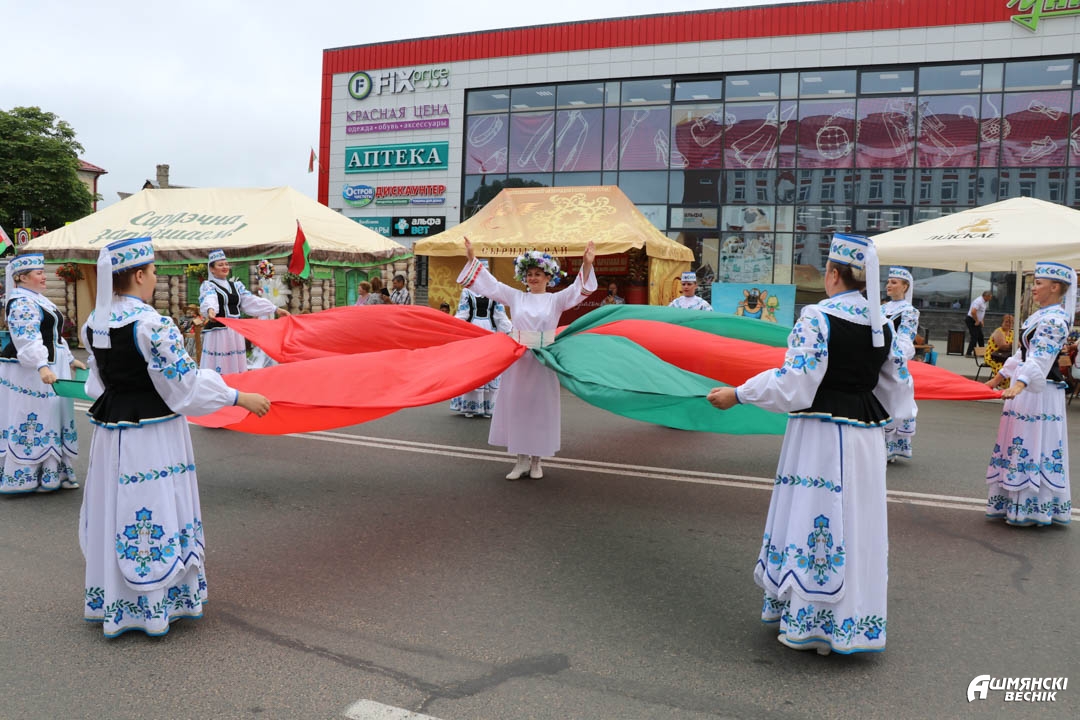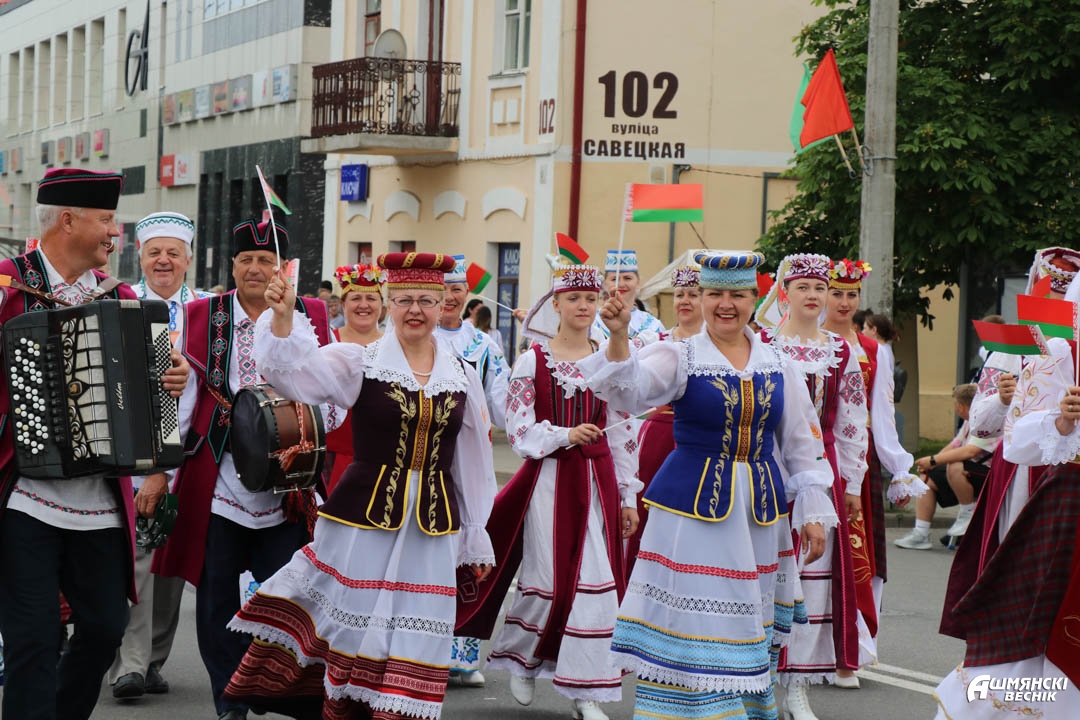 Завершила праздничное шествие колонна лучших творческих коллективов районного центра культуры, вместе с музыкальным номером подаривших ошмянцам отличное настроение.