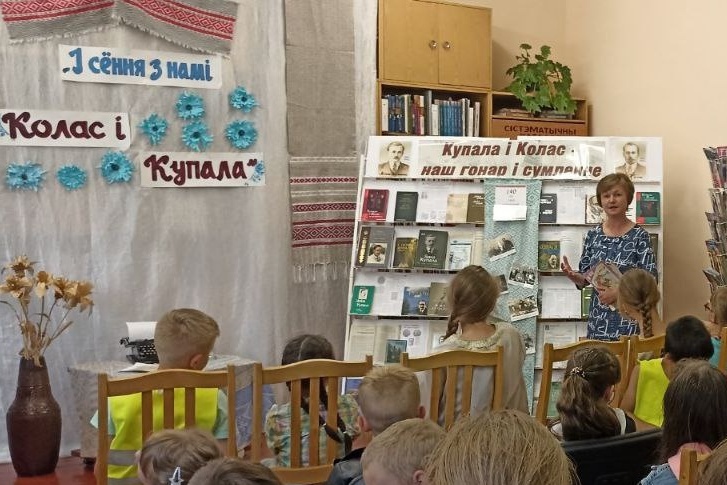 Бібліятэкары “правялі” сваіх чытачоў па жыццёвых і творчых сцежках пісьменнікаў. З уздымам прагучалі вершы “Жняя”, “Мы павінны ведаць”, “Вясна”, а таксама музычныя кампазіцыі ў выкананні ансамбля “Песняры” на словы беларускіх класікаў. Бібліятэкары нагадалі цікавыя звесткі з паўсядзённага жыцця пісьменнікаў. Агляд літаратуры, якая прадстаўлена на кніжнай выставе “Колас і Купала – наш гонар і сумленне”, зрабіла бібліёграф Алена Гушча.