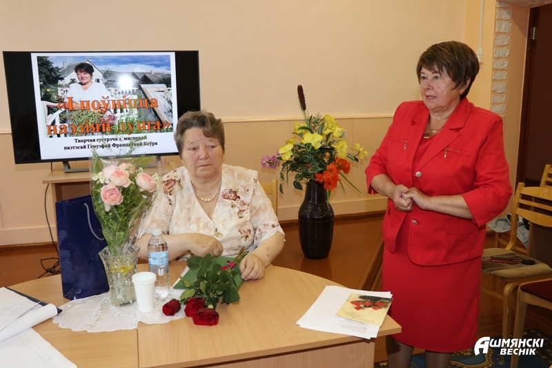 Разам з удзельнікамі літаратурнага аб’яднання пры рэдакцыі раённай газеты на мерапрыемства пад назвай “І поўніцца паэзіяй душа” прыйшлі родныя, калегі і сябры Генуэфы Францаўны. Прыйшлі, каб падтрымаць яе і выказаць удзячнасць за яе паэтычны дар і згоду на сустрэчы.