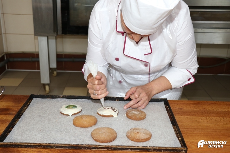 Майстар кандытарскага цэху Людміла Крулікоўская паказала нам працэс закладкі прадуктаў для цеста, а пакуль яно замешвалася ў спецыяльнай машыне — а гэта каля 40 мінут — расказала пра некаторыя хітрасці выпечкі гальшанскага перніка. Зразумела, яна не расказала пра ўсе. Акрамя таго добра вядома, што нават па адным і тым жа рэцэпце ў розных гаспадынь атрымліваюцца зусім розныя вырабы.