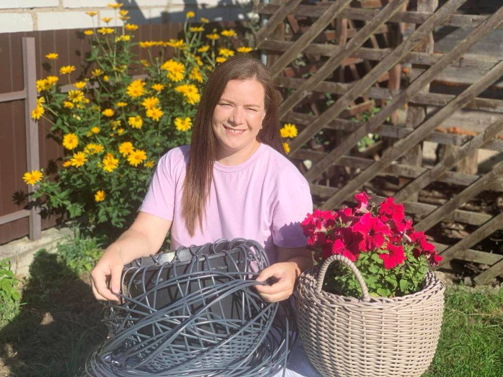Ее корзины, кашпо, милые органайзеры украшают дом. Она часто дарит свои изделия близким, родным, знакомым, находит место для своих работ в предметном кабинете. Эта молодая женщина совершенно не представляет своей жизни без творчества. Анна, как и все девушки и женщины, очень любит цветы. Ее сад всегда украшают самые разнообразные виды этих растений: нежные лилии томно греются на солнышке, скромные виолы украшают аккуратные клумбы, розы величаво поднимают гордые головы к солнцу. Именно цветы подтолкнули Аню к новому увлечению. Прошлой зимой, когда все работы в саду были завершены, она начала искать свежие идеи для его оформления. К счастью, различные сайты предлагают множество вариантов. Внимание женщины тогда привлекли плетеные корзины, которые так гармонично смотрелись на приусадебных участках. Через некоторое время была освоена технология плетения таких изделий, и Анна создала свой первый маленький шедевр из полиротанга. Ведь этот изящный материал не боится солнечных лучей, мороза, влаги. Однако дебютное изделие заставило мастерицу серьезно попотеть: материал не гнулся, ужасно болели пальцы, азарт постепенно угасал. Анна поняла, что процесс создания новых изделий, который она подсмотрела в обучающих видео, совершенно отличается от реального положения дел. Женщина все же не сдалась и довела дело до завершения. Так появился первый маленький шедевр.