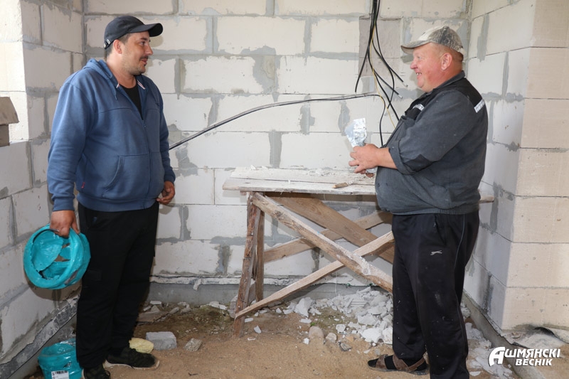 С бригадой строителей, которую возглавляет прораб Денис Батян, познакомилась в Доргишках. Недалеко от административного здания КСУП «Гольшаны» ведется строительство дома усадебного типа для тружеников сельскохозяйственного предприятия. Этот объект КСУП «Гольшаны» строит за средства хозяйства и собственными силами.
