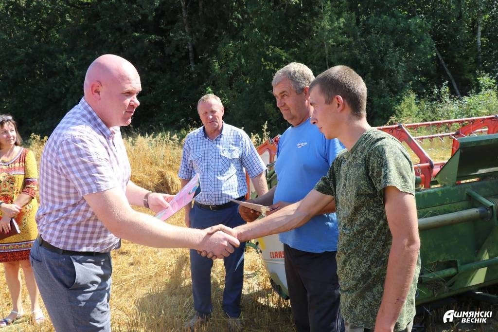 Вместе с начальником райсельхозпрода Андреем Гордеем они встретились с коллективами экипажей на поле и поблагодарили за труд. Традиционно профсоюзы посещают участников жатвы — лидеров соревнований с подарками и поздравлениями. Раиса Турлай и Андрей Гордей вручили передовикам благодарности и подарочные сертификаты.