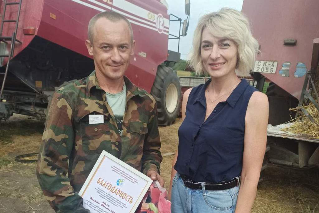 На протяжении пяти лет Гродненская областная организация Белорусского профсоюза работников образования и науки шефствует над работниками жатвы в период уборочной кампании в нашем районе. Руководитель отраслевого профсоюза Лела Шпак посетила Ошмянщину. Она встретилась с комбайнерами КСУП «Крейванцы» Вадимом Мухо и Андреем Петкевичем. Профсоюзный лидер в беседе с работниками отметила их трудолюбие и ответственное отношение к работе, вручила благодарственные письма и подарки.