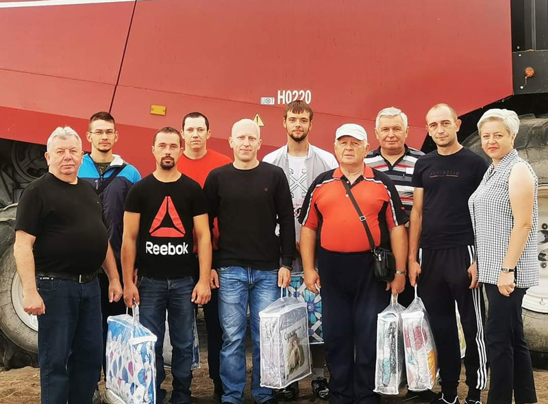 Профсоюзы поблагодарили за нелегкий труд комбайнеров П.Н. Самсонюка, И.В. Плавского, Н.А. Борташевича, М.Г. Блашкевича, водителей Д.И. Томяловича, В.А. Демидовича, звено по доработке зерна на сушилке в составе М.Н. Завадского и А.В. Забродского.