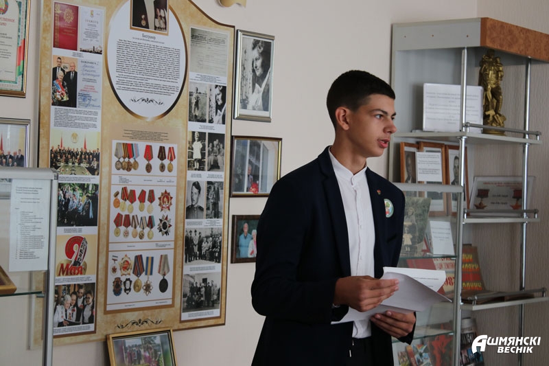 — Глава государства менее трех лет назад назначил меня руководителем Ошмянского района, и для меня историческая память — это проведение политики государства на нашей ошмянской земле в том числе на основе исторической памяти, потому что невозможно строить настоящее и будущее без знания истории, этапы которой повлияли на становление нашего независимого государства. Я смотрю на светлые глаза наших детей и прихожу к выводу, что мы правильно их учим, потому что нет государства без четного понимания фундамента, на котором оно базируется и развивается. Наша с вами задача – не утрачивать нить исторической памяти и строить ее на примерах, которые имеют для всех нас важное значение, и о которых вы сегодня рассказываете, в том числе и на памяти о наших ветеранах.