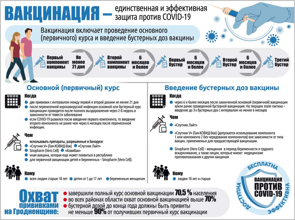 Более 70 % населения Ошмянского района прошли первичный курс вакцинации от COVID-19