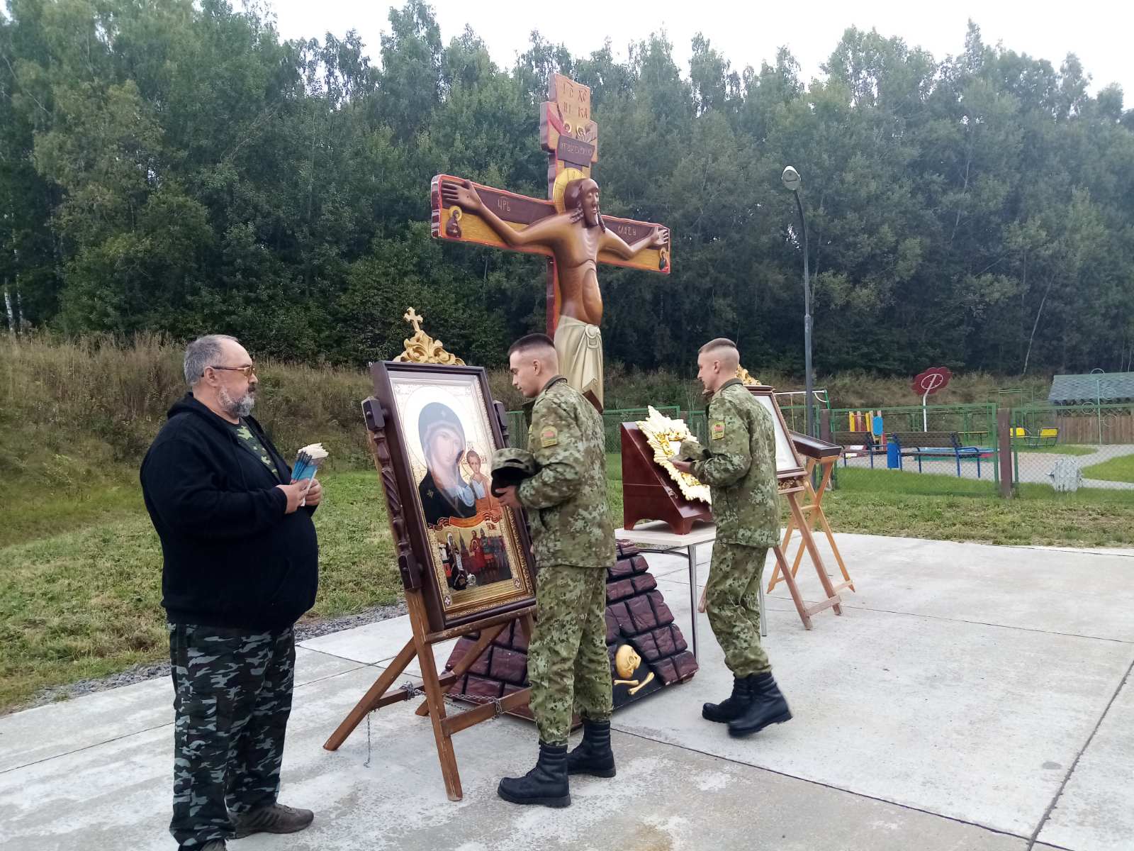 Перед присутствующими выступил сопровождающий реликвий Сергий Суслов. Он рассказал, что автомобильный крестный ход «Святая Русь» охватил множество белорусских приграничных городов и деревень. Он отметил, что мероприятие дает возможность укрепить веру, ведь с каждой православной реликвией связано множество исцелений и благодатей. Сергий подчеркнул значимость участия в богослужении сотрудников правоохранительных органов, которые, не жалея своих сил, охраняют мир и порядок на нашей территории. А также передал в храм копию иконы Казанской Божьей Матери.