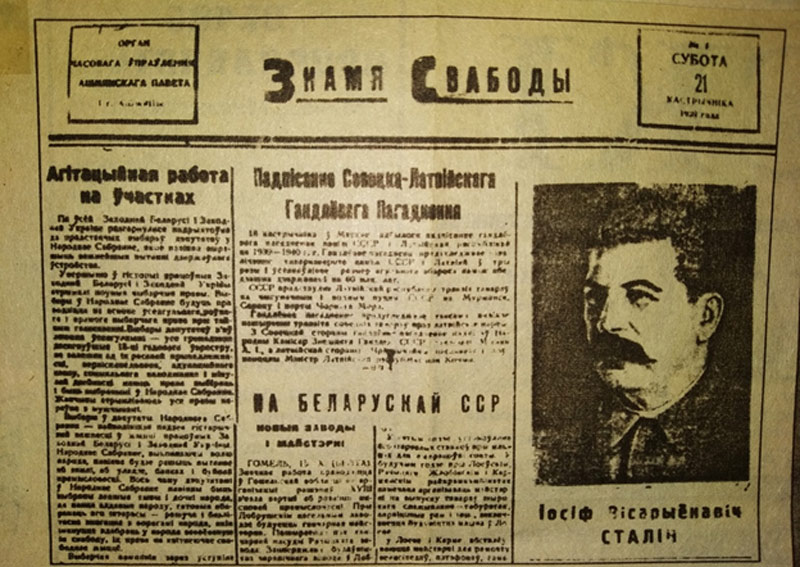 Так с приходом советской власти на территорию Западной Беларуси в сентябре 1939 г. начинается организация советской периодической печати на воссоединенных территориях, в том числе и на Ошмянщине. С 1 января 1940 г. газета стала органом поветового комитета партии и поветового исполнительного комитета. С 5 февраля 1940 г. газета «Знамя свабоды» стала органом РК КП(б)Б и райисполкома. Редакция и типография газеты первоначально размещалась по ул. Пилсудского (сейчас ул. Советская), д. 54.