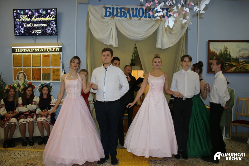 Читатели, заглянув сюда в этот вечер, не узнали знакомых залов и полок с книгами. Стены словно раздвинулись, книги — заговорили, а писатели и литературные герои вышли к своим читателям. На первом этаже развернулись литературные площадки: вот Татьяна Ларина пишет письмо Ленскому, а вот прохаживается Эркюль Пуаро, загадочно улыбаясь в свои удивительные усы, а тут пан Быковский хвастается своим богатством и «шляхетностью», поглядывая на молоденьких девушек. Только в этот вечер можно было встретить в фойе библиотеки Гоголя, Пушкина, Янку Купалу.
