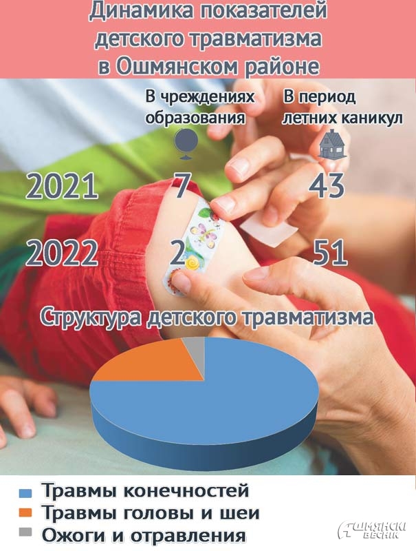 Главный врач Ошмянской ЦРБ Инга Буткевич также добавила, что в последние годы увеличилось количество и появились новые виды травм, полученных при прыжках на батутах, катании на тюбингах и иных средствах индивидуальной мобильности. В связи с этим, выступая на собраниях и родительских конференциях, медработники доводят взрослым информацию в том числе и по вопросам профилактики детского травматизма.