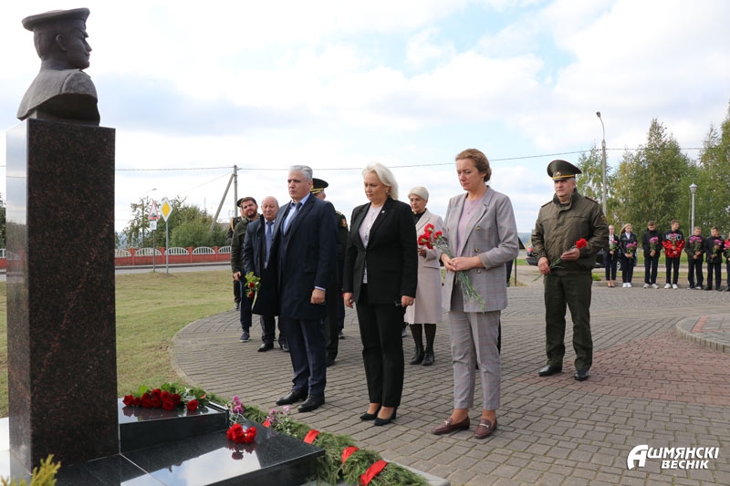 С гордостью за героев участники митинга возложили цветы к подножью памятного знака летчикам и памятника-бюста.