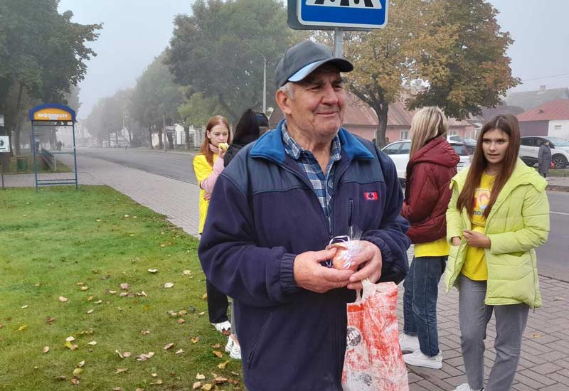В преддверии Дня пожилых людей работники отделения социальной адаптации и реабилитации, а также волонтеры государственного учреждения «Территориальный центр социального обслуживания населения Ошмянского района» — студенты аграрно-экономического колледжа — вышли на улицы города с акцией по привлечению внимания совершеннолетних детей к вопросам безопасного жизнеустройства пожилых родителей и ухода за ними «Старшему поколению – нашу заботу», а также с акцией «День добра и уважения». Прохожим раздавались буклеты-памятки, а людям пожилого возраста волонтеры приготовили небольшие подарки – яблоки, каждое — с любовью упакованное, с пожеланиями добра, здоровья и долголетия.