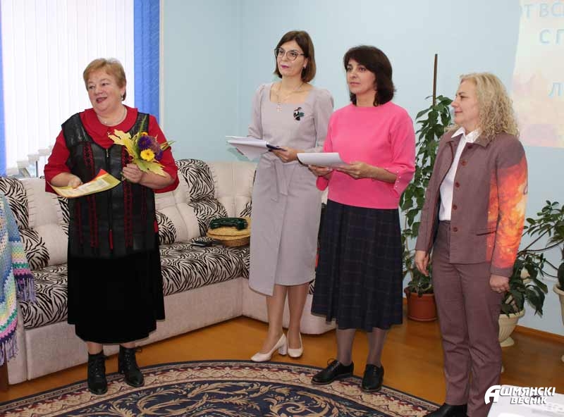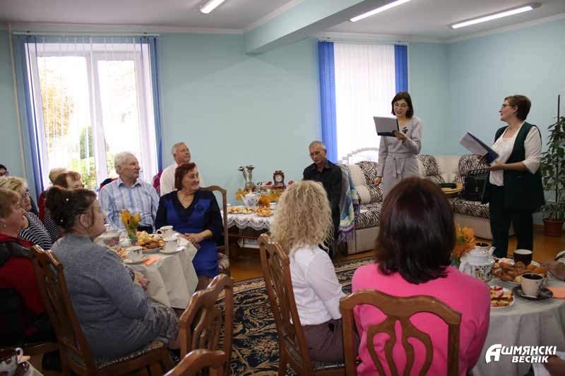 Слова поздравлений звучали от ведущих — заведующей отделением дневного пребывания для граждан пожилого возраста Ирины Маньковской и специалиста Дианы Куприянюк.