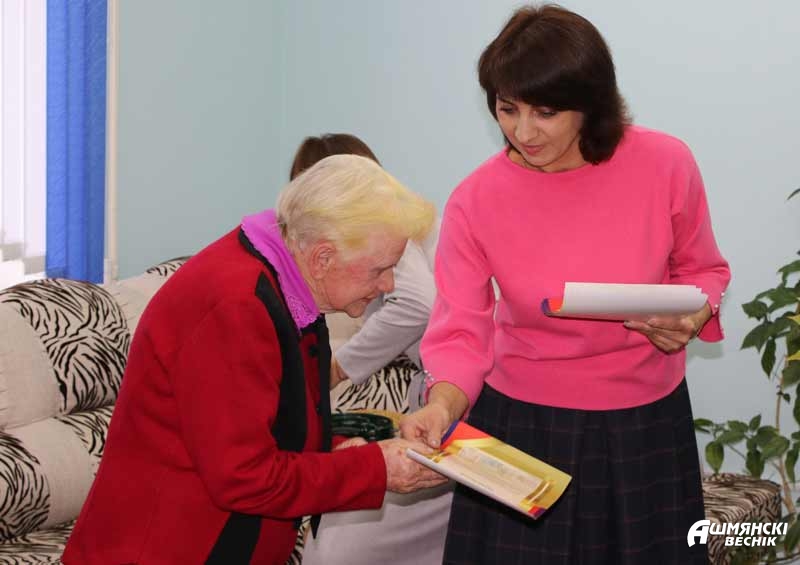 Поздравить ветеранов труда пришли заместитель начальника управления по труду, занятости и социальной защите Ошмянского райисполкома Ольга Кухаревич, преседатель районного совета ветеранов Владимир Бельченко и активисты ветеранского движения, заместитель директора территориального центра социального обслуживания населения Елена Венгерова.