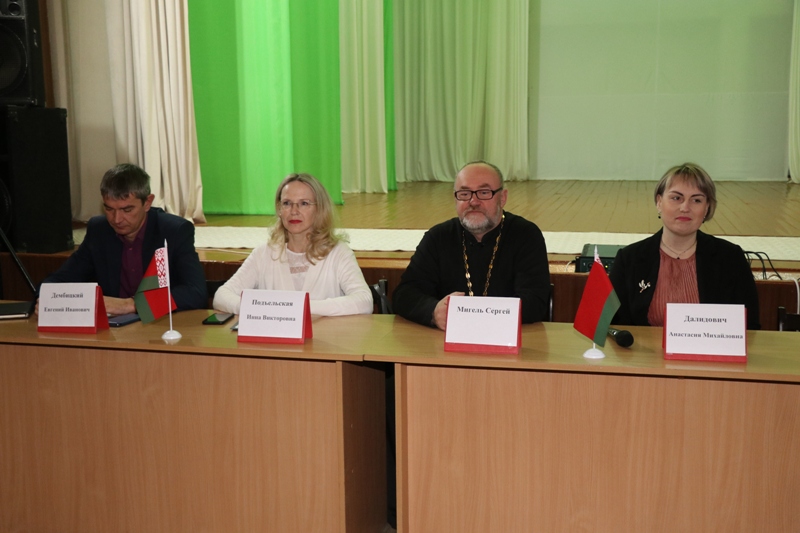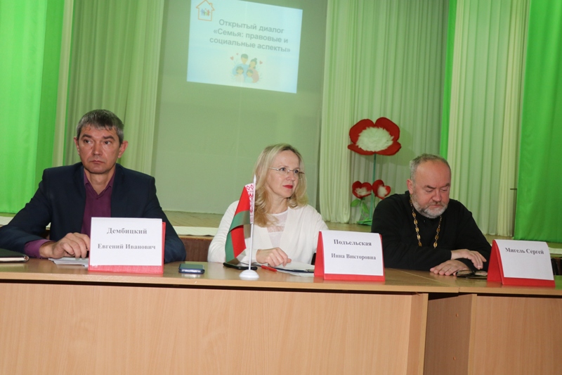 В открытом диалоге, организованном отделом ЗАГСа Ошмянского райисполкома, приняли участие начальник отдела Инна Подъельская, заведующая женской консультацией поликлиники центральной районной больницы Анастасия Далидович, священнослужитель храма Воскресения Христова иерей Сергей Мигель, заведующий юридической консультацией Ошмянского района Евгений Дембицкий, заместитель директора по воспитательной работе аграрно-экономического колледжа Марина Игнатович.