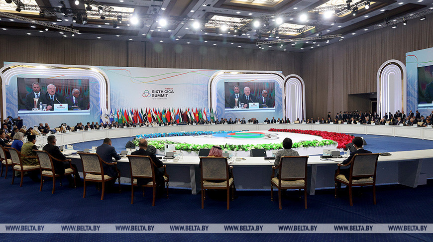 Понимание белорусской стороной целей Совещания по взаимодействию и мерам доверия в Азии состоит в том, чтобы сообща создавать механизмы сотрудничества по широкому спектру вопросов без притеснения и санкций. «Нам нужны форматы наибольшего благоприятствования торговле, инвестициям, открытые границы для товаров, услуг, рабочей силы, а также новые транспортные коридоры», — сказал Александр Лукашенко.