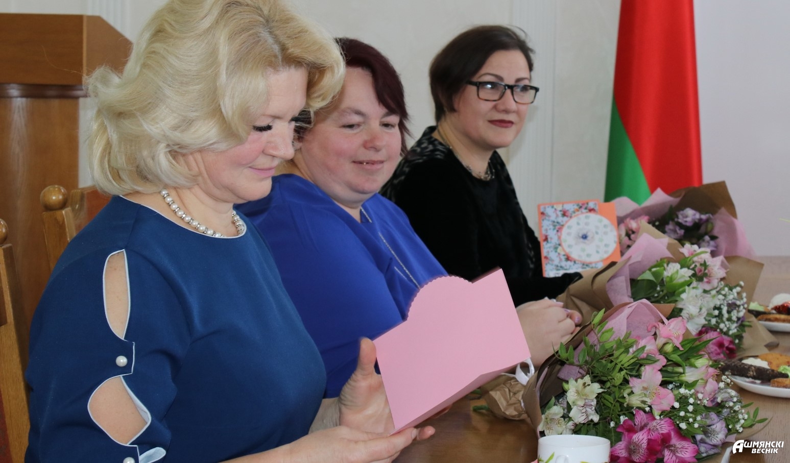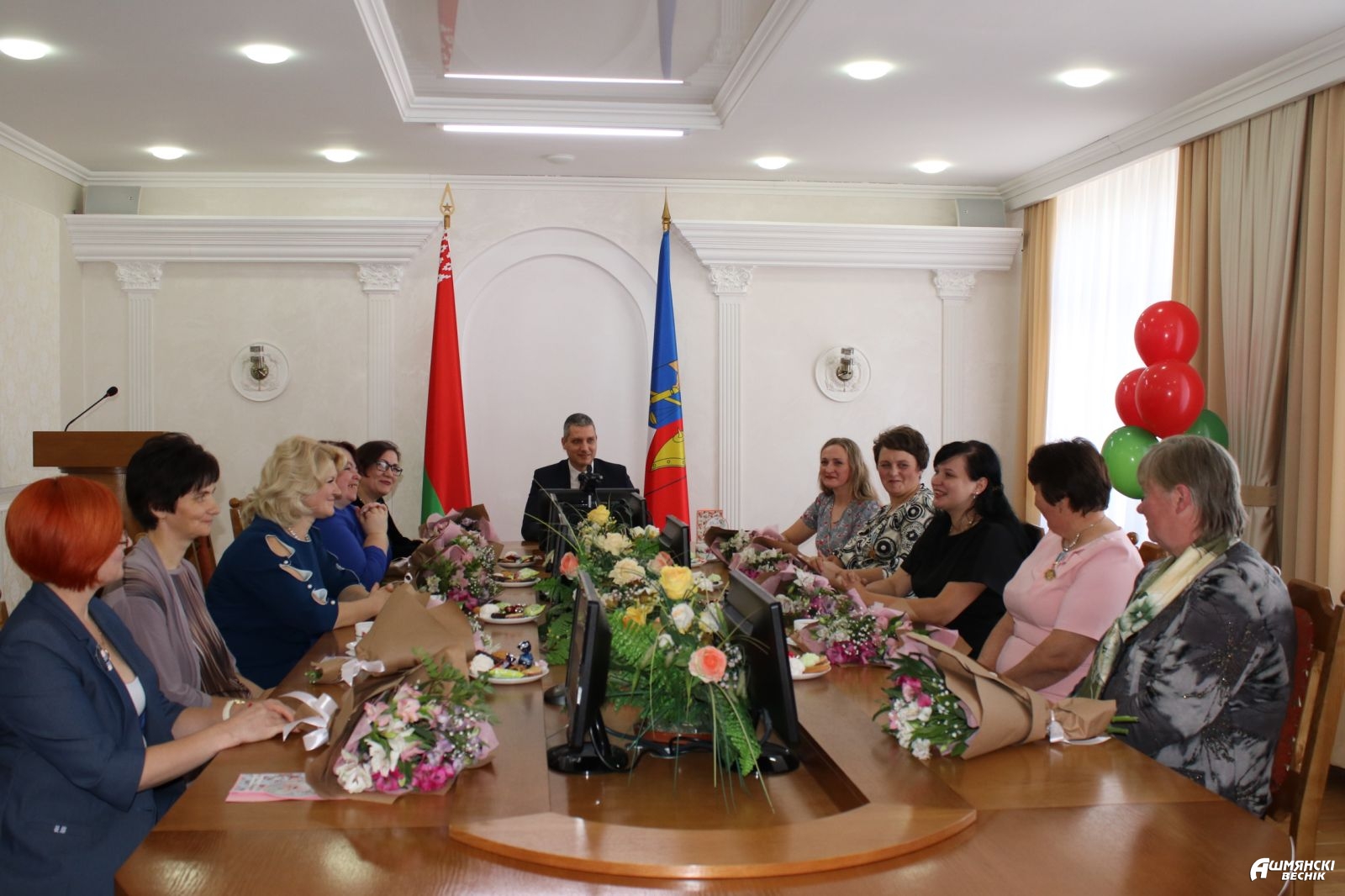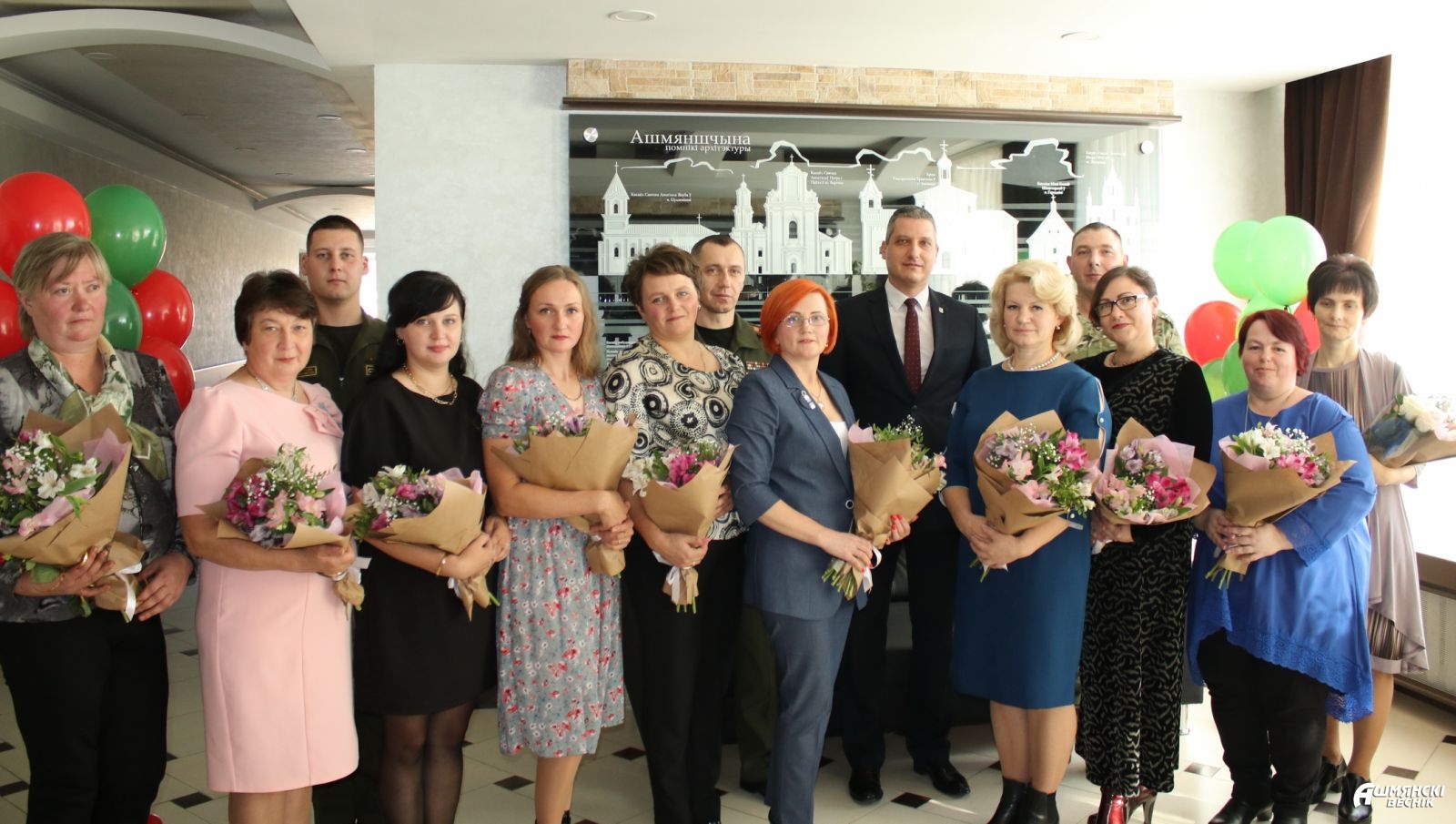 Цветы, поздравления и подарки от руководства района принимали в этот день десять матерей, которые успешно совмещают воспитание детей и построение карьеры, являются активными участницами общественной жизни района, которые каждый день отдают свое сердце детям. Среди них — многодетные мамы, мамы-руководители, приемные мамы, а также мамы, чьи дети проходят службу в воинских частях нашей страны: Людмила Карпович, Татьяна Мицкевич, Светлана Станевич, Анна Супранович, Екатерина Рябоконь, Екатерина Лакота, Ирина Видевич, Тереса Шлемпо, Марина Куликович, Марина Кришталь.