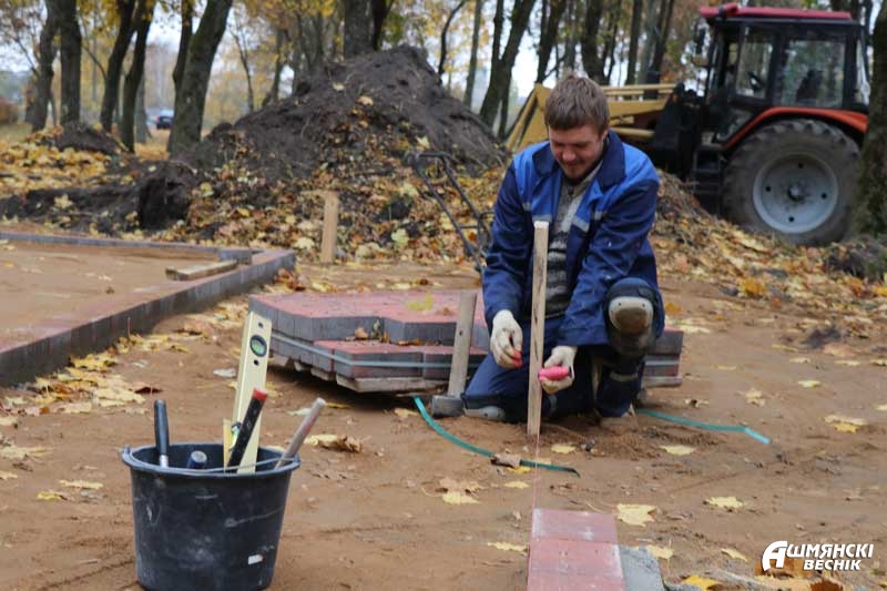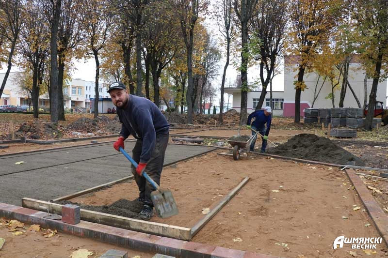 В парке идет реконструкция с устройством детских игровых площадок – так пояснили в управлении архитектуры, строительства и жилищно-коммунального хозяйства Ошмянского районного исполнительного комитета. Игровое оборудование, которое находилось в парке ранее, отремонтировано и будет установлено на специальные площадки со специальным резиновым покрытием. Дополнительно будут установлены два новых игровых комплекса. Сейчас ведутся работы по разбивке дорожек и укладке тротуарной плитки, обустройству четырех оснований-площадок для детского игрового оборудования.