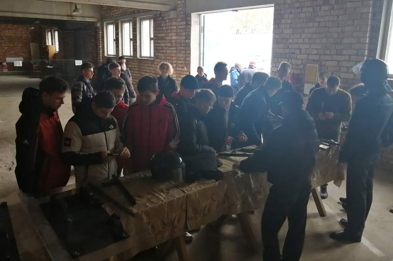 Закончился день открытых дверей экскурсией по отделу внутренних дел. Учащиеся ознакомились с работой изолятора для временного содержания лиц задержанных или заключенных под стражу, других подразделений и служб отдела, посетили комнату истории. Живой интерес у учащихся вызвало вооружение, средства связи и специальные средства, транспорт, находящиеся в отделе.