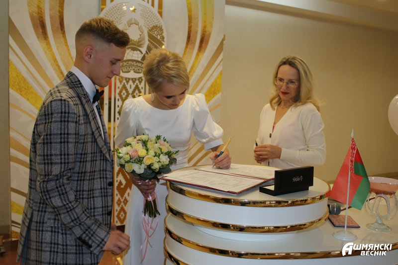 Свою страницу впишут в историю органов ЗАГС и ошмянские молодожены Вадим и Ангелина Дятлович, которые стали 105-ой парой, официально получившей статус семьи в Ошмянском районе в этом году.