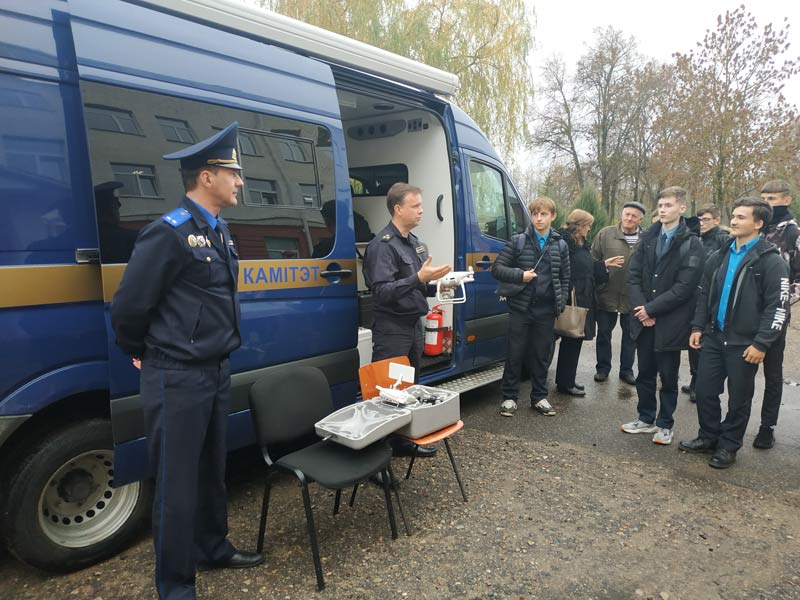 После этого следователь криминалистического отдела Максим Гаркавый рассказал о некоторых секретах работы следователя, продемонстрировав возможности передвижной криминалистической лаборатории на базе автомобиля Фольксваген Крафтер. Специалист продемонстрировал арсенал различных криминалистических чемоданов, используемых следователями при работе на местах происшествия, рассказал, как квадрокоптер помогает отыскивать заблудивших в лесу граждан. Продемонстрировал, с помощью какого оборудования и каким способом следователи находят и изымают различные следы, в том числе пальцев рук, следы биологического происхождения.