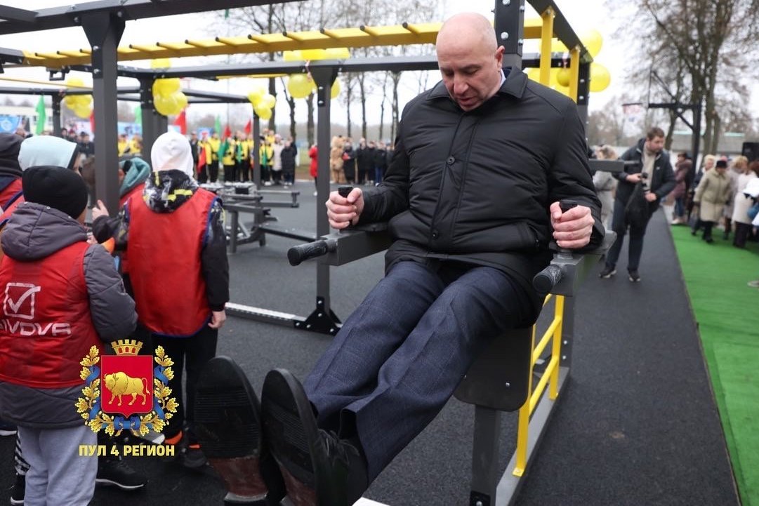 Не только поприветствовать ребят, мотивировав их на занятия спортом, но и показать личный пример, опробовав некоторые из установленных тренажеров успел помощник Президента Республики Беларусь, инспектор по Гродненской области Юрий Караев: