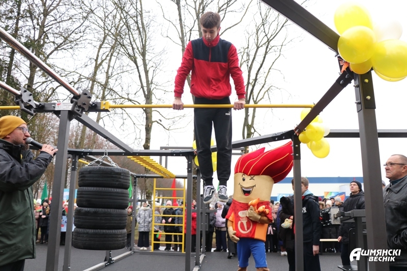 На площадке разместились четыре зоны для воркаута и выполнения физических упражнений: баскетбольная площадка, велосипед, зона воркаут с тренажерами, зона для людей с ограниченными возможностями. К слову, в Беларуси построено уже 32 подобных спортивных комплекса, разработанных с применением современных технологий для проведения силовых и функциональных тренировок на свежем воздухе. И все же площадка в Ошмянах стала первой в стране площадкой нового усовершенствованного типа с отдельной зоной для людей с ограниченными возможностями.