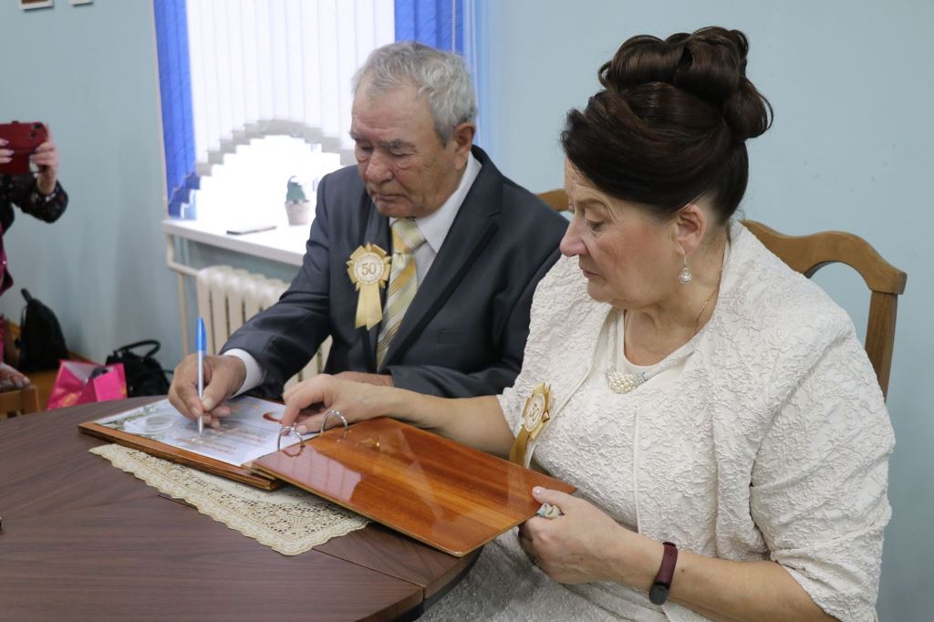 Казалось, все было, как полвека назад – свадебный букет, «скрепление» торжественного события подписями в Книге почетных юбиляров Ошмянского района, поздравления и подарки от гостей и даже свадебный вальс…