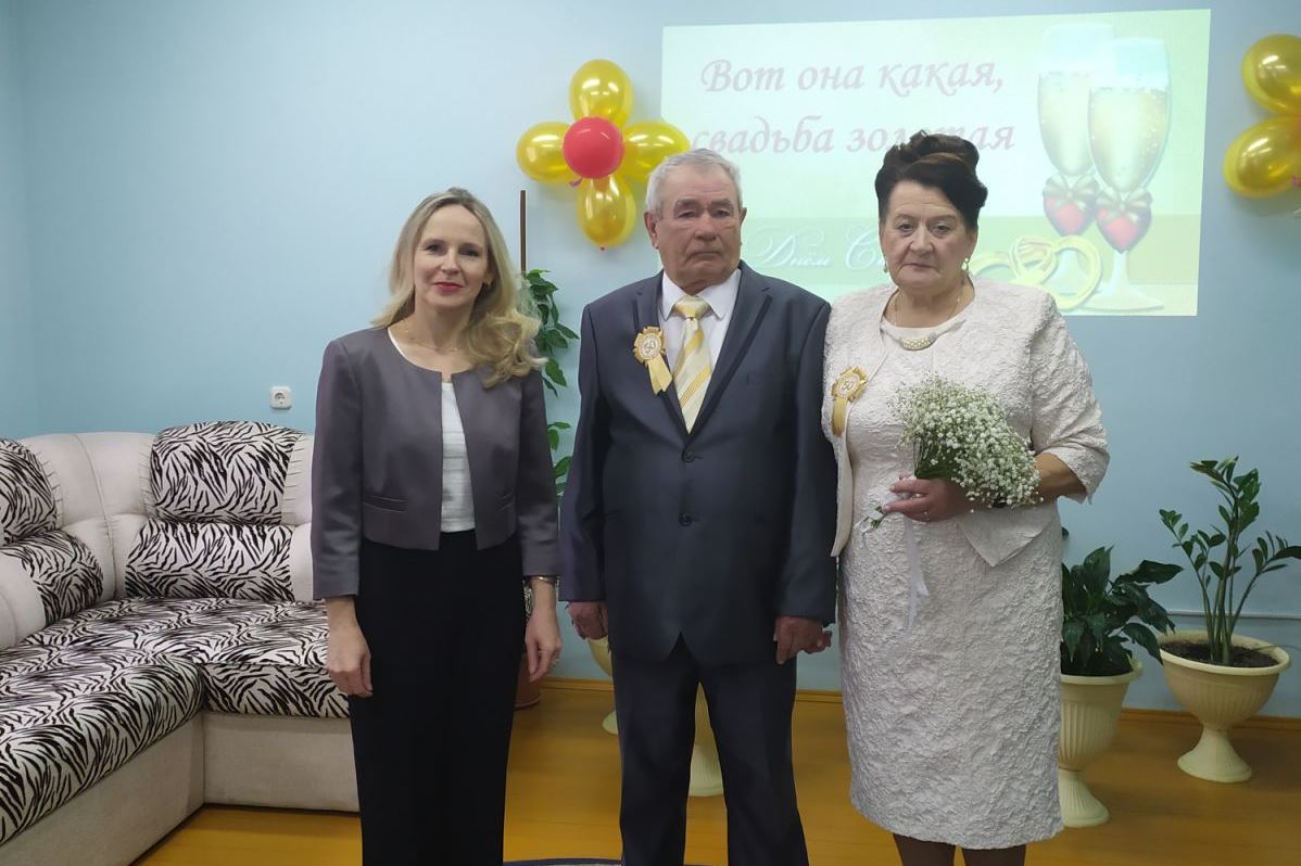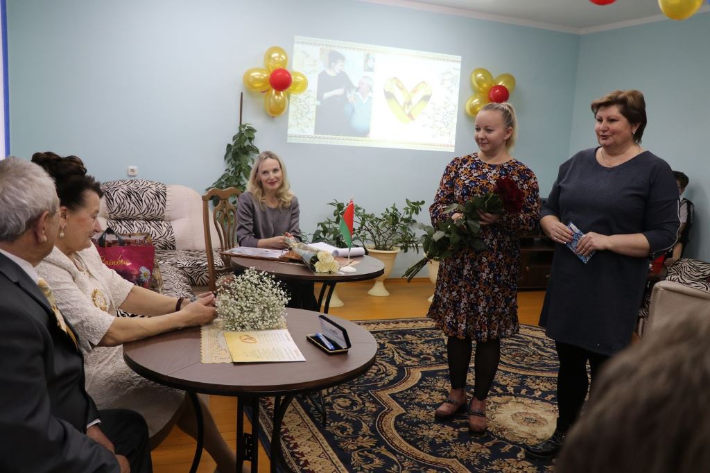 Новые фото добавят в него Людвига Станиславовна и Марьян Станиславович. С волнительным событием поздравила золотых юбиляров начальник ЗАГС Ошмянского райисполкома Инна Подъельская, которая вручила подарки от районного исполнительного комитета и от отдела. К поздравлениям присоединились директор территориального центра социального обслуживания населения Лилия Неверкевич, ответственный секретарь районного совета ветеранов Галина Яшина, профком Ошмянской ветеринарной станции, коллектив отделения дневного пребывания для граждан пожилого возраста во главе с Ириной Маньковской, а также посетители отделения. Приятным сюрпризом для юбиляров стало музыкальное поздравление от народного ансамбля народной песни «Жытніца» Краковского отдела культуры и досуга.