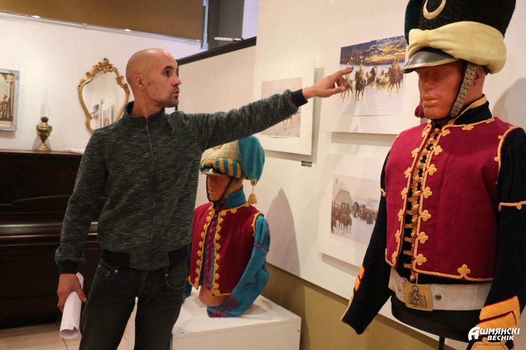 Рыхтуючыся да выставы, супрацоўнікі музея ў сваіх фондах адшукалі літаграфіі і фотаздымкі, якія датычацца вайны з Напалеонам. Калісьці гэтыя матэрыялы былі перададзены нам Ваўкавыскім ваенна-гістарычным музеем імя Баграціёна, а сёння дапоўнілі выставу аўтара гістарычных касцюмаў Канстанціна Дземідовіча.