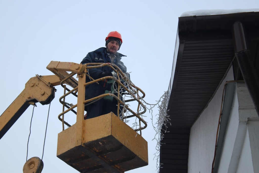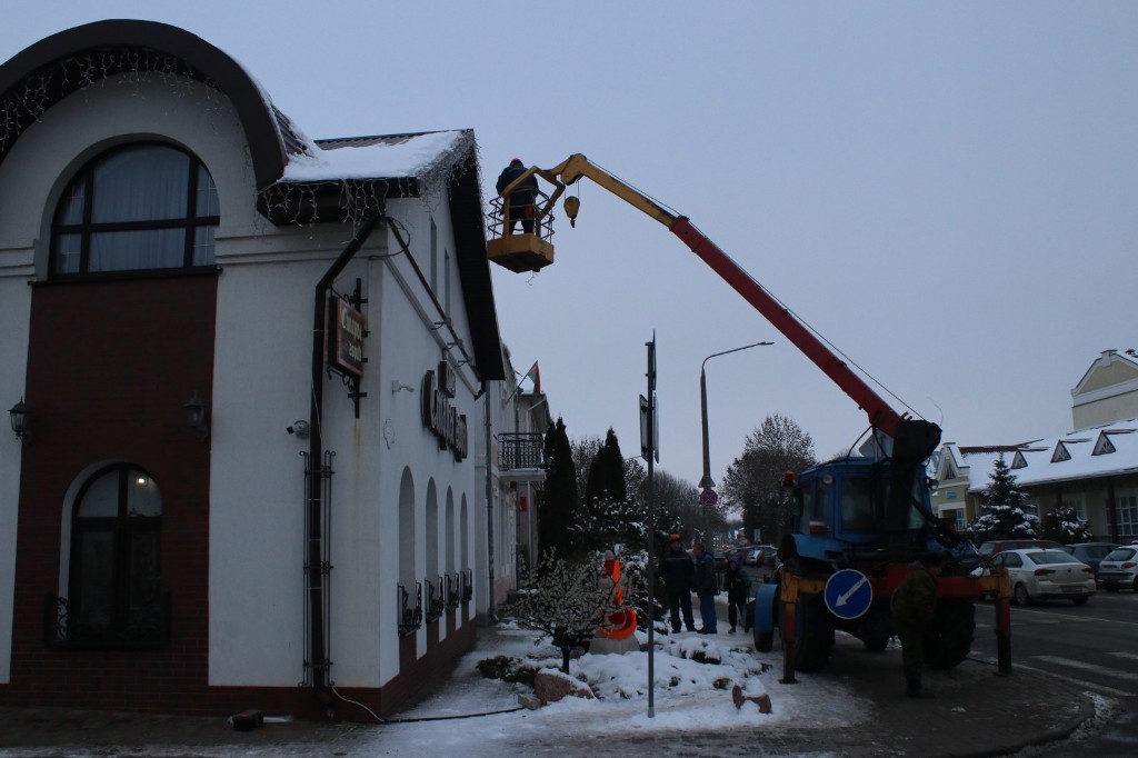Фотофакт. В Ошмянах организации украшают свои здания в преддверии Нового года