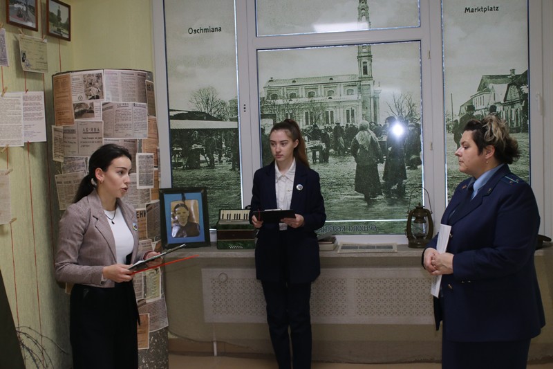 “Праца Генеральнай пракуратуры Рэспублікі Беларусь у межах угалоўнай справы па фактах генацыду працягваецца, выяўляюцца ўсё новыя і новыя факты злачынстваў нямецкіх акупантаў. Пра гэта нельга маўчаць. Каб падтрымліваць актуальнасць экспазіцыі, карысна чэрпаць інфармацыю з афіцыйнага сайта Генеральнай пракуратуры, дзе размяшчаюцца апошнія звесткі пра ход расследавання крымінальнай справы. Разам мы зможам захаваць гістарычную памяць, перадаць яе наступным пакаленням,” — адзначыла памочнік пракурора Ашмянскага раёна Алеся Мікалаеўна Леўшунова, якая наведала экспазіцыю школы.