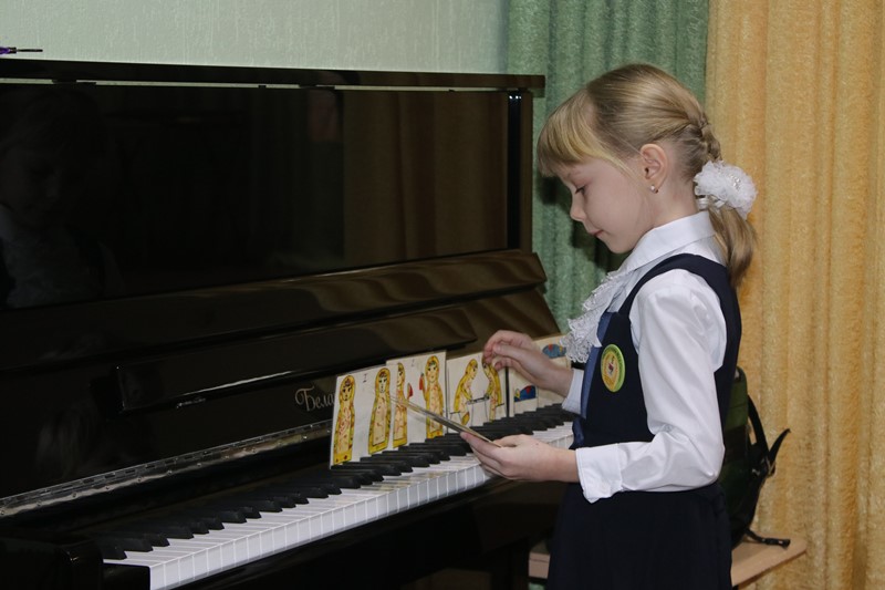 Школа встретила своих гостей новогодними выставками и живой музыкой в исполнении педагогов школы Елены Козарь и Ольги Треймак, выставкой работ участников образцовой студии изобразительного искусства «Волшебная кисть» под руководством Сергея Савастинкевича «Музыка в рисунке».