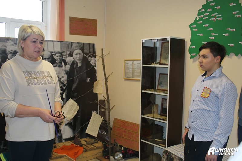 В Международный день памяти жертв преступления геноцида, который отмечается 9 декабря, сотрудники музея провели для школьников несколько тематических экскурсий и лекций. На одну из них были приглашены помощник прокурора Ошмянского района Олеся Левшунова и начальник отдела идеологической работы, культуры и по делам молодежи райисполкома Ольга Шидловская.
