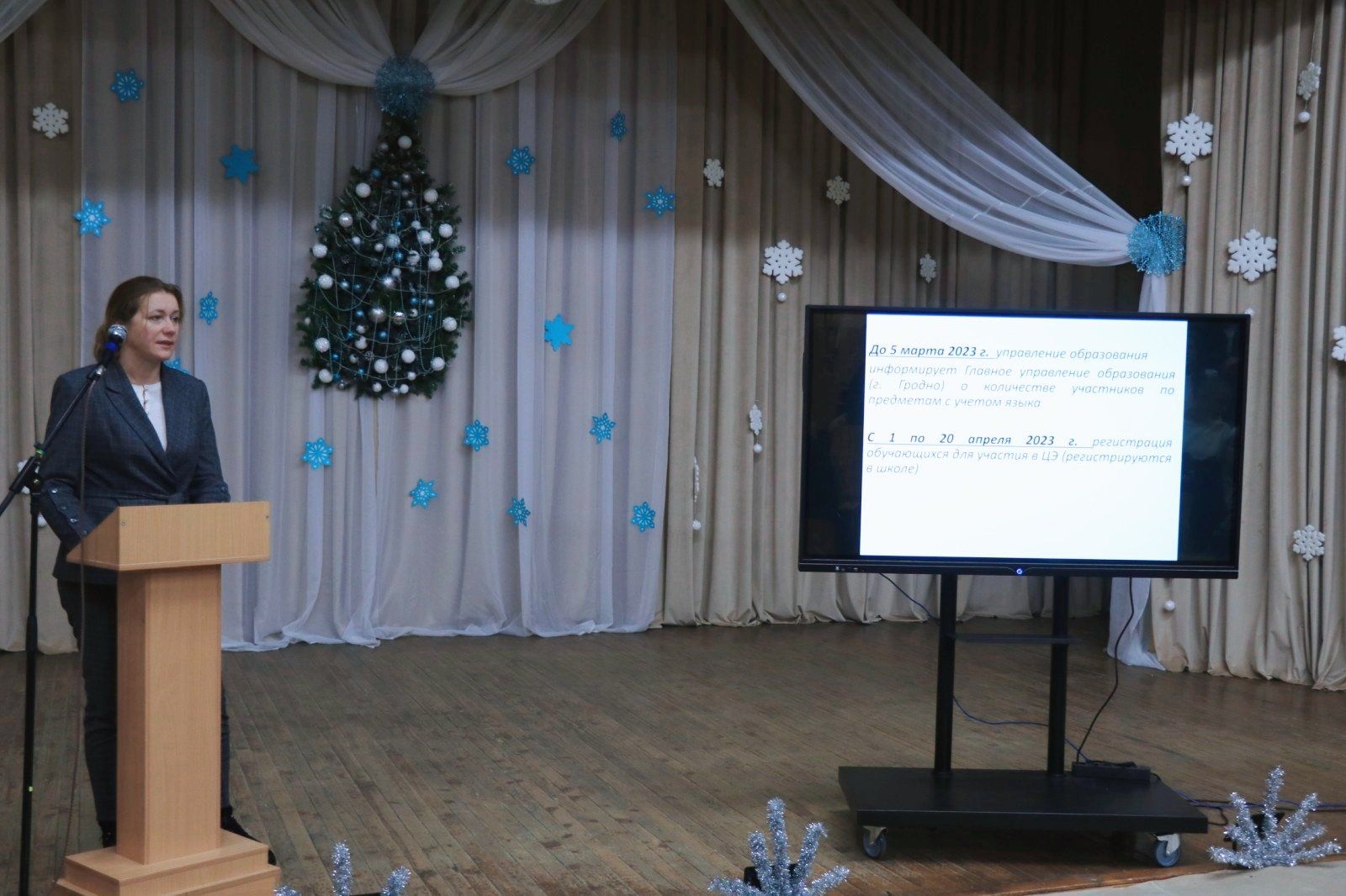Начальник управления образования, член районной организации РОО «Белая Русь» Светлана Барковская, ее заместитель Анна Амбражевич, выступая перед выпускниками и родителями средней школы №1 г. Ошмяны имени М.М. Гружевского рассказали о порядке проведения предстоящих экзаменов.