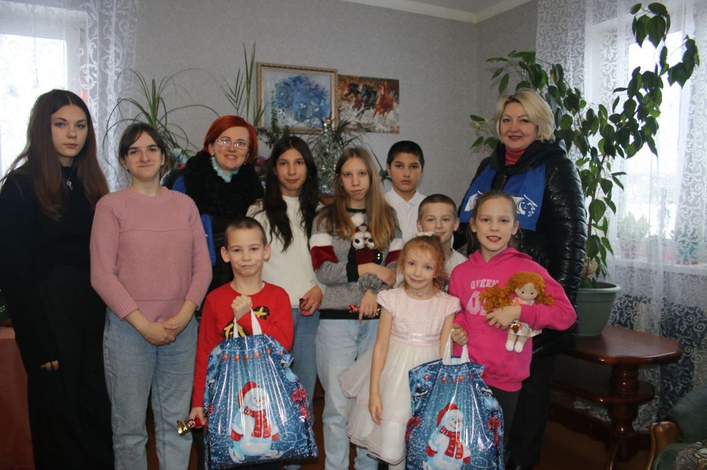 Следующим пунктом в эстафете добра стала большая дружная семья Екатерины и Владимира Рябоконь, в которой воспитывается 10 детей. Ребята очень обрадовались гостям и приятному сюрпризу — сладким подаркам.