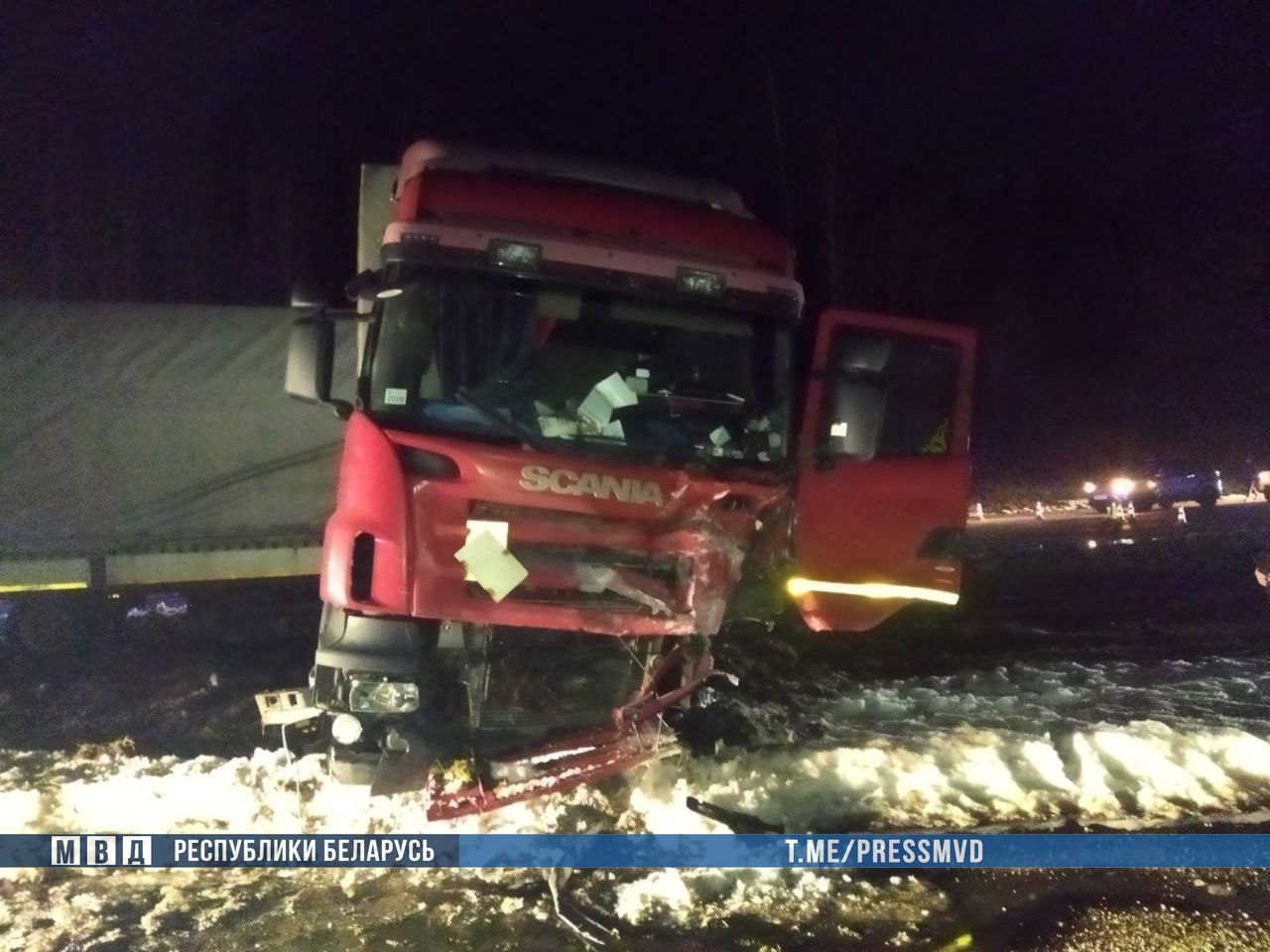 Столкновение произошло 3 января около 17:50 на 83 км автодороги М-7 «Минск-Ошмяны-граница Литовской Республики» Воложинского района. По предварительной информации, 18-летний житель Ошмян, управляя автомобилем «Fiat Doblo», двигаясь в направлении райцентра, выехал на полосу встречного движения, где столкнулся с грузовиком «Scania» с полуприцепом под управлением 52-летнего жителя Ошмян, сообщили в МВД.